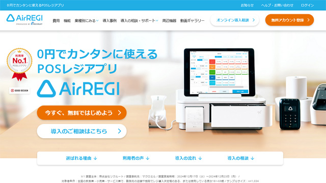 Airレジは会計などのレジの基本機能はもちろんのこと、キャッシュレス決済への対応や売上管理・分析、会計ソフトとの連携など、日々の業務に役立つさまざまな機能が備わったiPadやiPhoneで無料で利用できるレジアプリです。キャッシュレス決済サービスのAirペイと連携できます。